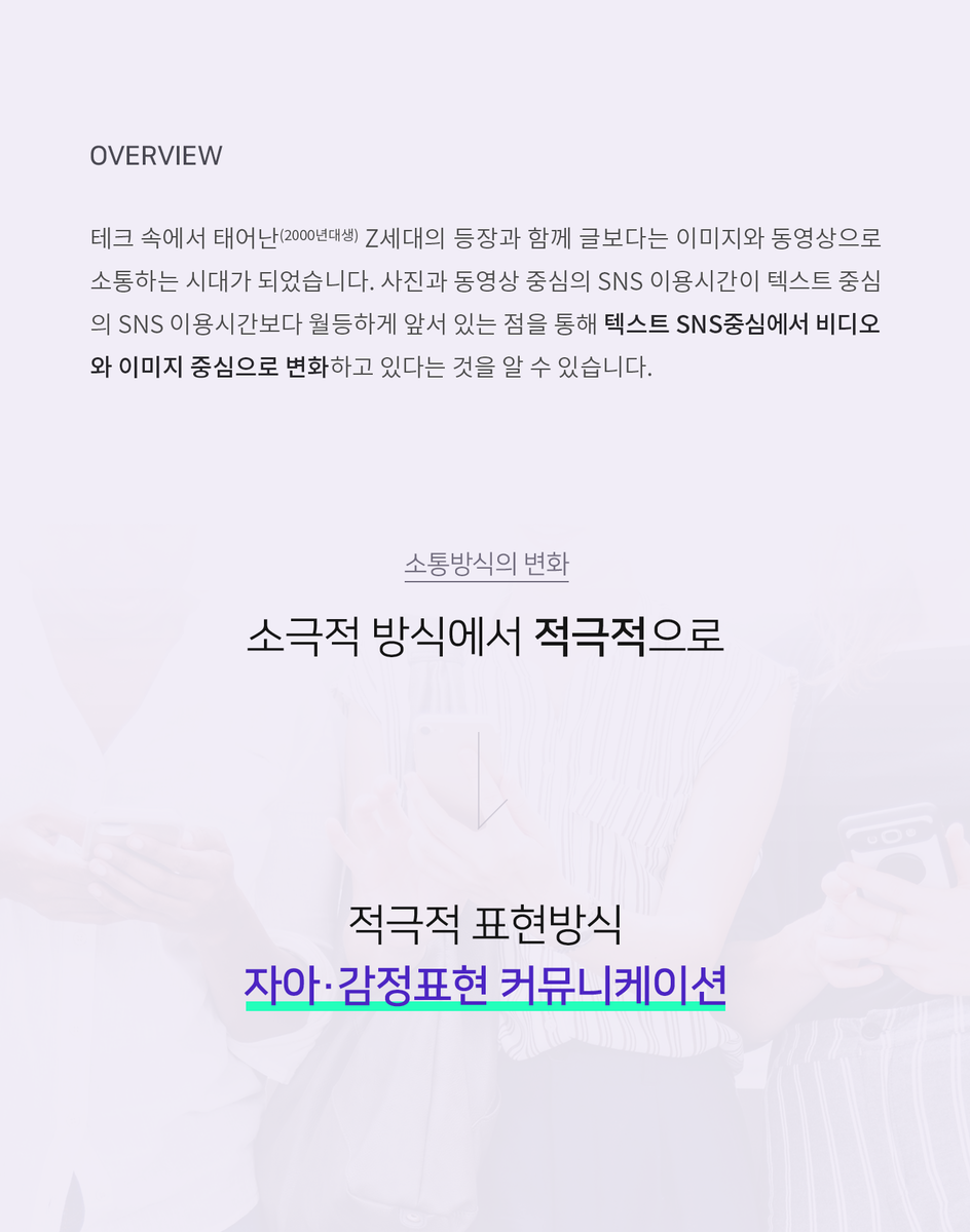 이미지·비디오 중심의 미래향 커뮤니케이션 서비스 입니다.
