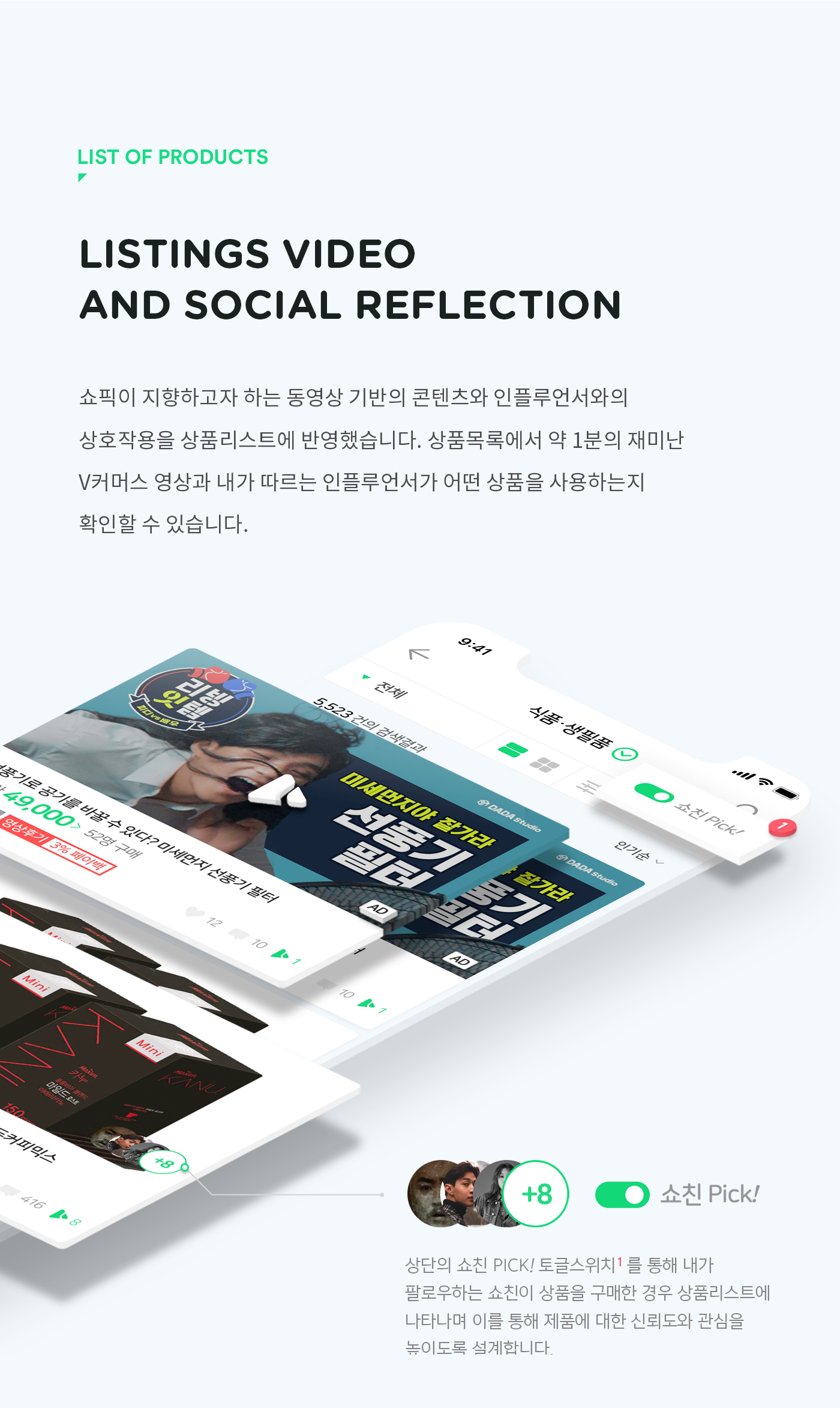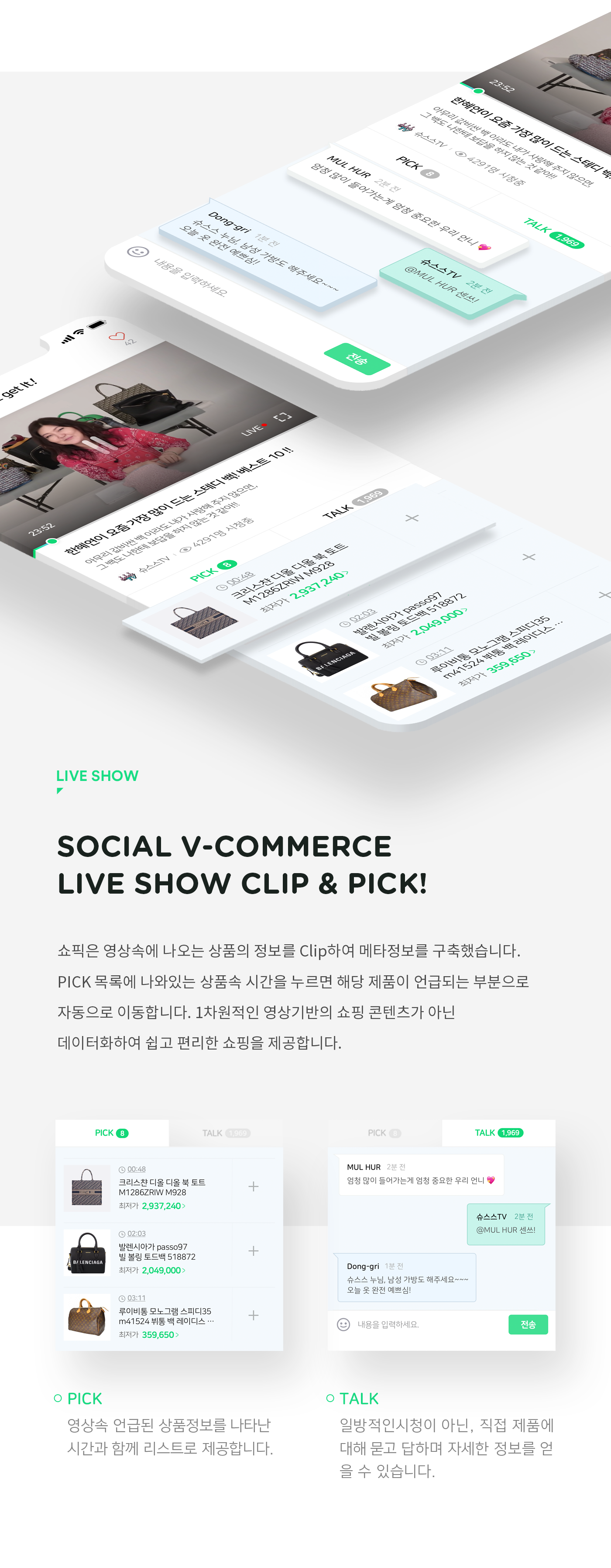 착안해 비디오를 결합한 신개념 모바일 V 커머스 쇼핑 플렛폼입니다.